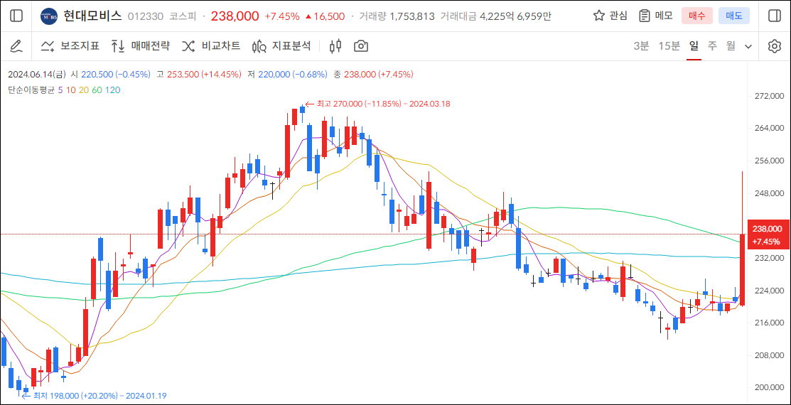 현대모비스 주가 14.45%까지 급등, 회장 사망설 돌아